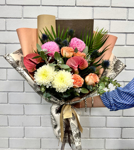 Our pictures are used as a guide to style and colour only. Some flowers may be seasonally unavailable, or delivered in tighter bud form to ensure maximum longevity. Rest assured we use the highest quality flowers for all our arrangements.