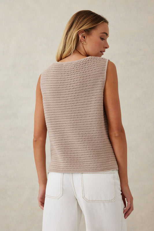 Mesh Knit Tank - Ecru